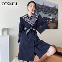 Trench Coat For Women 2016 Fashion Turn Down Collar Double Breasted Contrast Color Long Coats Plus Size Casaco Fe Trench Coats Women Spring Trench Coat Clothes