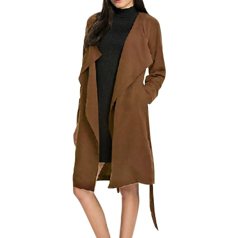 Long Sleeve Oversized Trench Coat Women Outerwear Loose Coat Gabardina Mujer Waterfall Italian Ladies Blazer Belted Duster Coats Trench Coat Women Duster Coattrench Coat Aliexpress